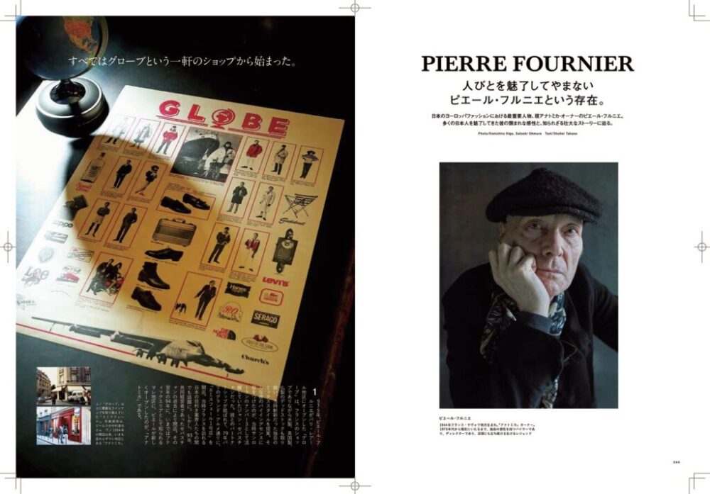 この号では、のべ16ページにも及ぶピエール・フルニエを徹底解剖する企画を制作したのだが、とにかく本人に会って、この号を直接手渡したかったのだ。緊張の一瞬。ピエールさんは快く我々を出迎えてくれ、例のページにも好意的な意見を寄せてくれた。誌面にサインをしてくれたり、追加でインタビューを引き受けてくれたりと、その紳士な姿は忘れない。それにしてもピエールさん、服の着こなしはもちろん、身のこなしそのものがエレガント。噂通りのリビングレジェンドだった。
