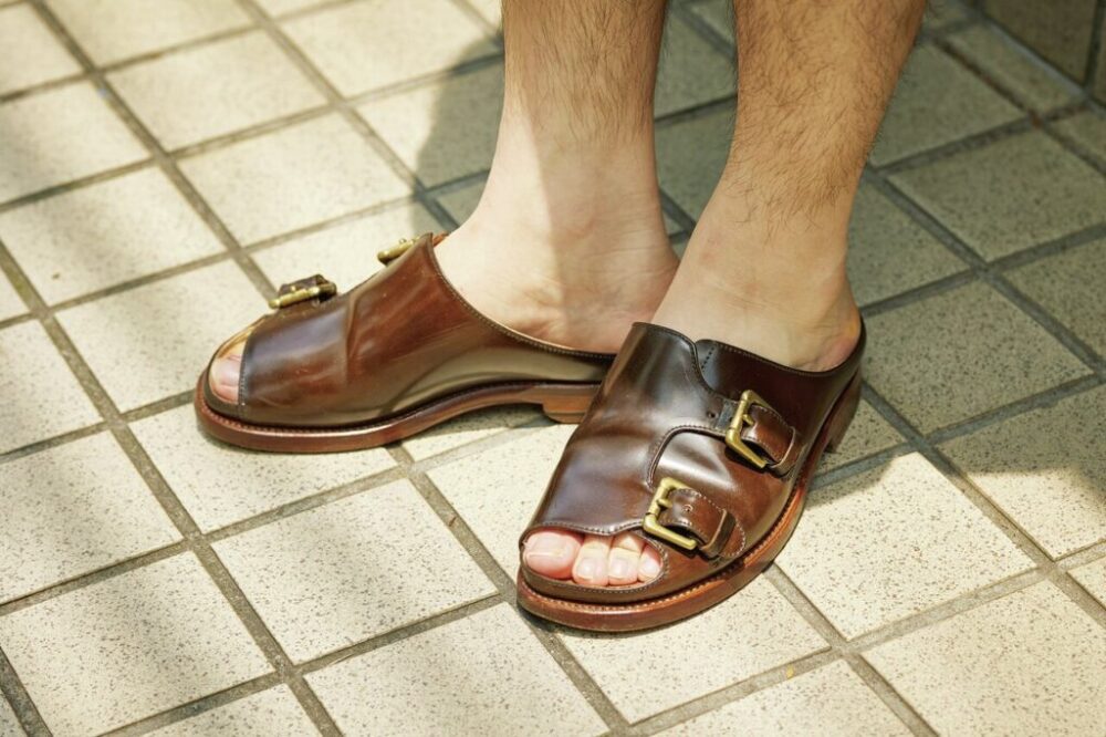 コードバンのダブルモンク、革のダブルソール、グッドイヤー製法など、サンダルらしからぬ謳い文句が揃った逸品。「ダークコニャックカラーがショーツスタイルに適度な風格をもたらしてくれます!」