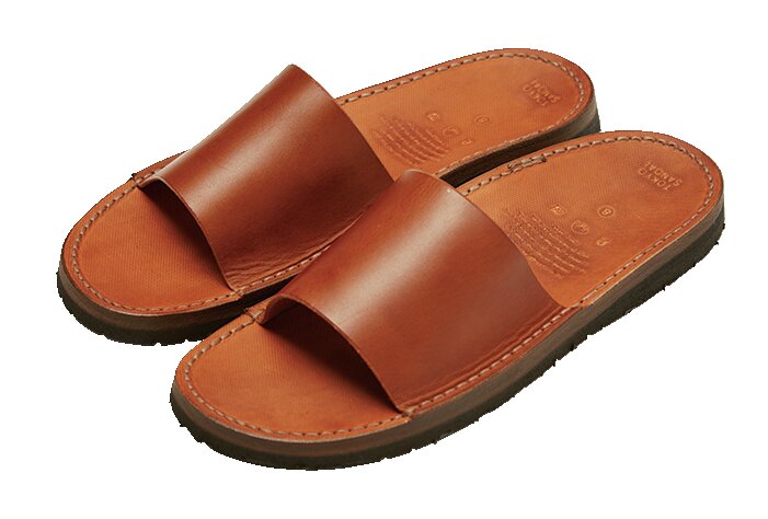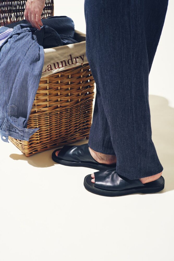 温泉街等で見かけるつっかけサンダルが元ネタ。歩行時に甲をサポートする絶妙なデザインでカッティングされ、足病医学に基づいた立体形状フットベッドと相まって、つっかけ離れした歩行性を獲得。3万6300円(ザ ブーツ ファクトリーTEL03-6806-2701)