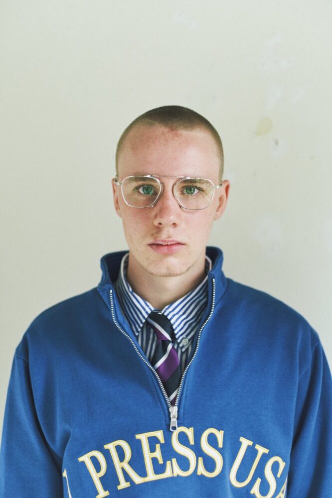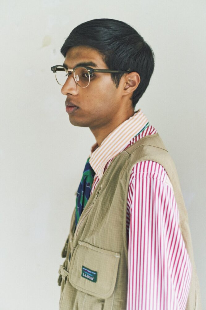 薄いカラーレンズがトレンドとして浸透するなか、ソリッドな濃色レンズにドキッとさせられる。プレッピースタイルにおける“甘辛ミックス”の最適解ってこういうことかも。サングラス3万5200円、レンズ4400円(ディグナ ハウスTEL03-5843-1612)
