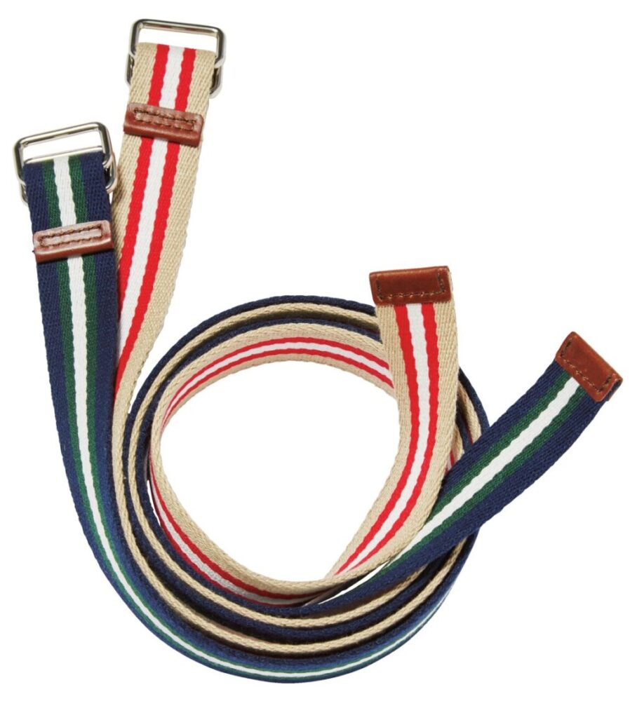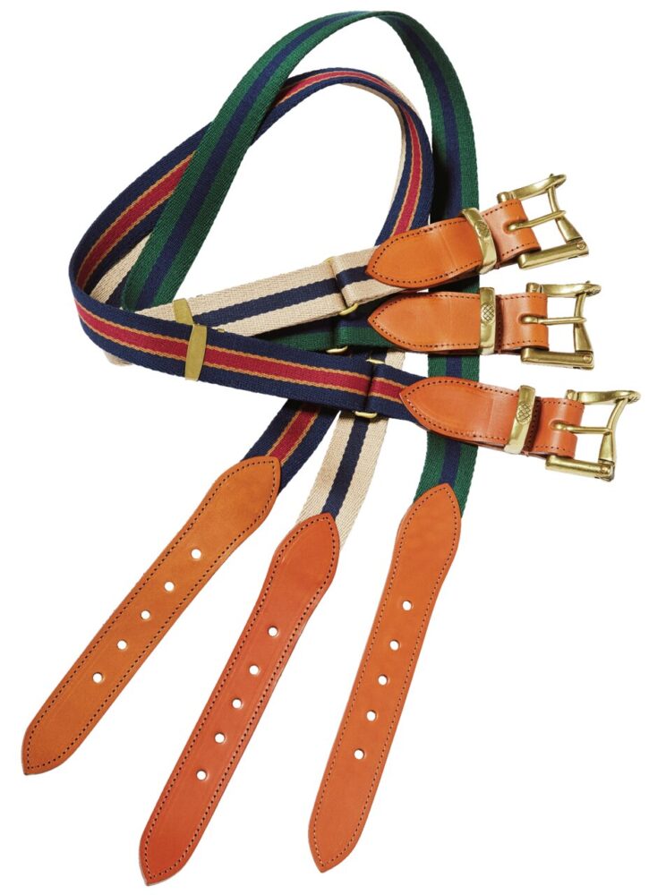 ストライプのガッシリとしたコットンベルトで、配色も懐かしのアイビースタイルをイメージ。その名も[アイビーテープベルト]。7480円(マッハ55リミテッドTEL03-5846-9535)