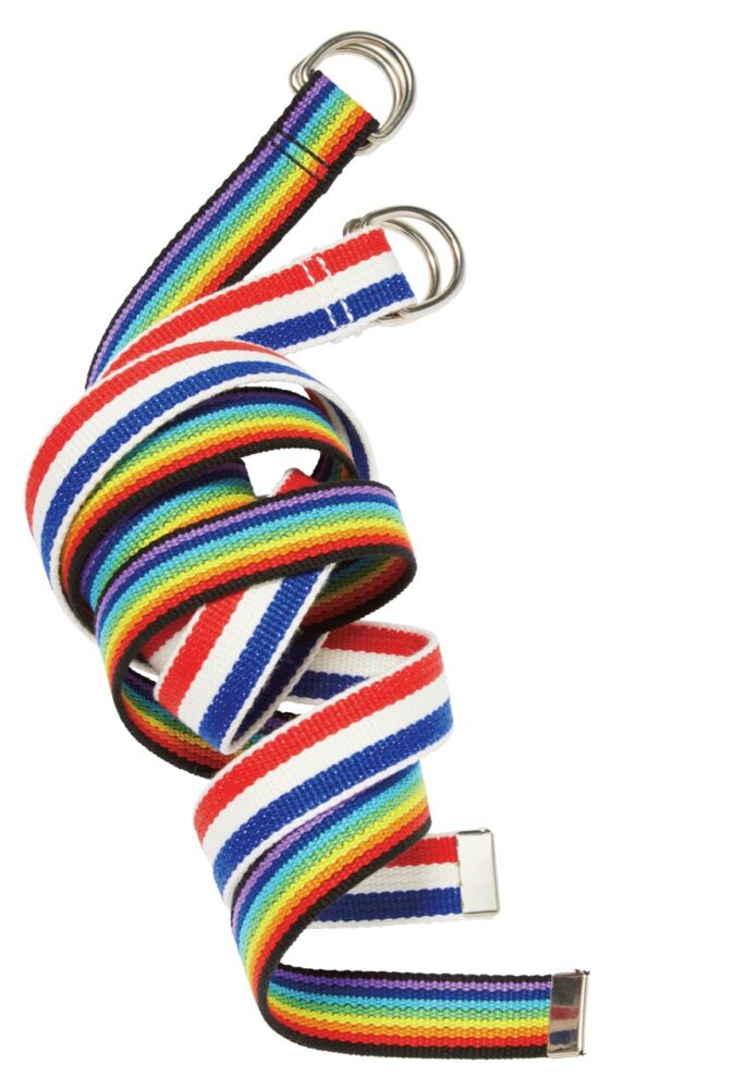 サスペンダーとベルトの専門ファクトリーが自社工場で製造した、派手なデザインと色使いが清々しいガチャベルト。5500円(ハイ!スタンダードTEL03-3464-2109)