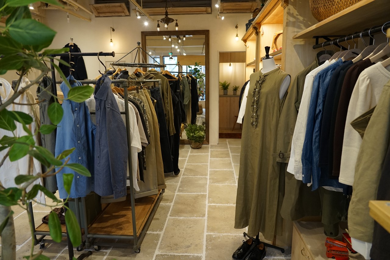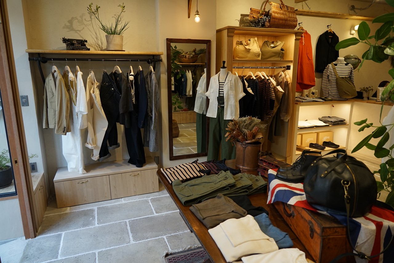 日本の優れた技術を駆使した「メインライン」、英国を中心とした欧州の伝統あるファクトリーから生み出される「オーセンティックライン」、ワークウェアをベースとした「ライブロ」や世界中の名だたるメーカーとのコラボレーションなど、新しいショップではこれらのラインが勢ぞろい。