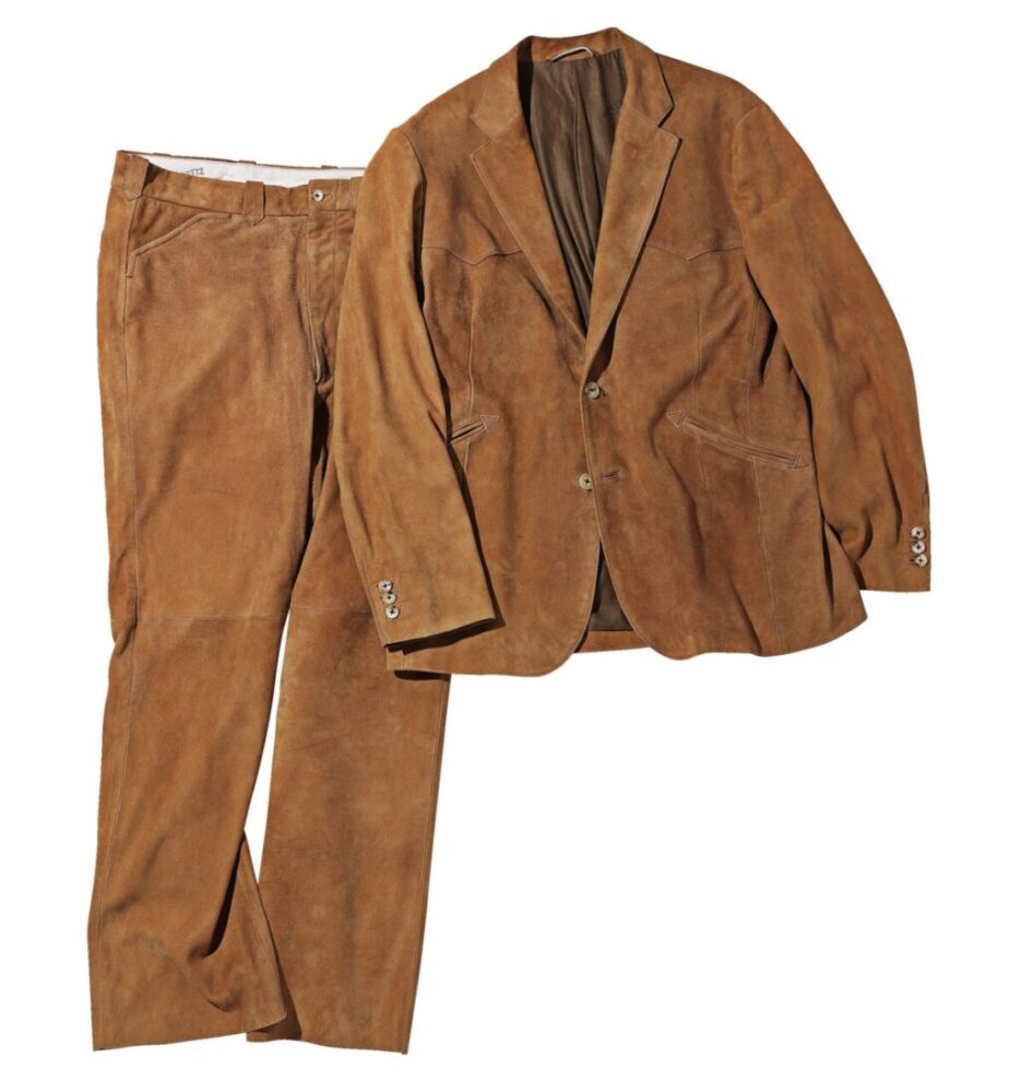 欧・米を問わない幅広くもニッチなセレクトが自慢の古着店「ピッツ」。オーナー、伊藤翼氏の知見をベースに、各年代のウエスタンスーツが持つ良い面を集約した、唯一無二のセットアップ。ヴィンテージではお目にかかれないスウェードレザーを贅沢に使用した気高きオーラは、着込むほどに存在感を増す。ジャケット13万2000円、パンツ9万9000円(ストールショールーム03-6812-9371 https://westoveralls.jp)