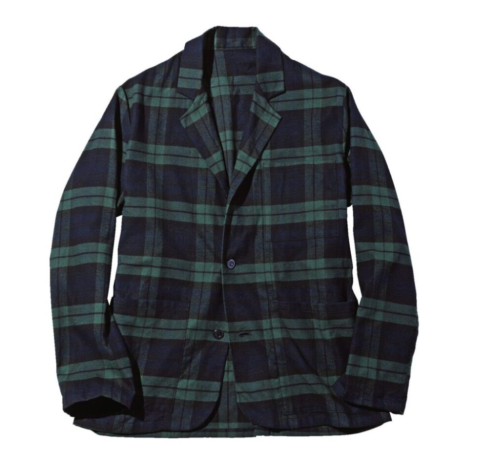 [ラウンジャージャケット]というモデル名から連想するは、カジュアルファッションの原点、ラウンジジャケット。同ブランドらしくシャツ生地で製作された裏地なしの仕立ては、どことなく色っぽいリラクシンな雰囲気で、何処へ行くにもお供させたい優れモノだ。ブラックウォッチ含む4色展開。5万5000円(ユーソニアングッズストア03-5410-1776 http://usoniangoodsstore.com)