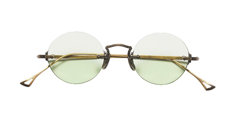 レンズを囲う「リム」がなく、剥き出しになっているデザイン。「ブリッジ」と「左右のテンプル」の計3つの部品を直接レンズに装着していることからスリーピースと呼ばれる。なお、この頃からアイウエアが実用品ではなく、装飾品であるという考えが生まれ、彫金が施されるようになる