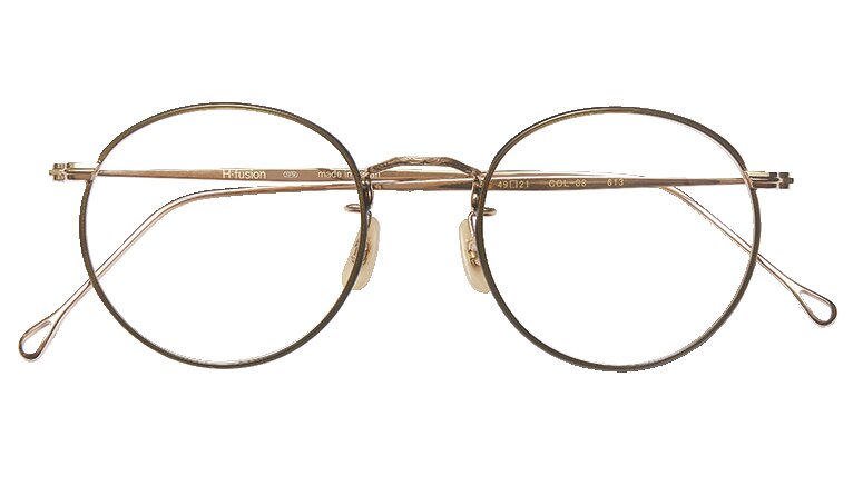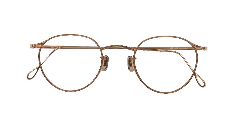 クラシックなチタン製サドルブリッジ。カラーもアンティーク調で、当時の雰囲気を満喫できる。4万1800円(アイウェア メビウスTEL03-5728-2018)