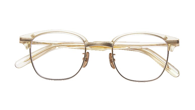 シルエットはクラシックでありながら、チタン製ノーズパッドを採用したハイブリッド仕様で、着用感も考慮。3万5200円(アイウェア メビウスTEL03-5728-2018)