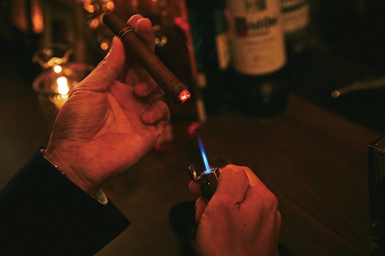 川﨑 まず知っておいていただきたいのが、葉巻は紙巻タバコのような肺喫煙でなく、口の中の粘膜に吸収させる口腔喫煙であるということ。肺喫煙ほどニコチンの吸収率は高くありませんが、口腔喫煙はじっくりと粘膜に吸収されていくので、ゆっくりと脳に到達して、まったりとした感覚に浸れるんです。