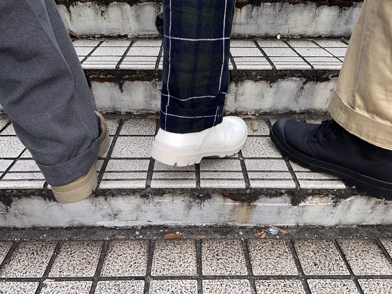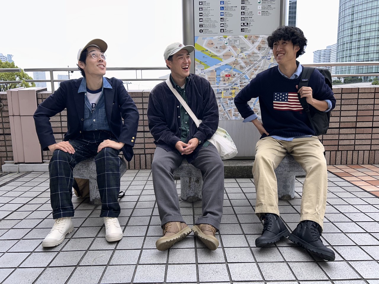 10月某日。この日は雨予報だった。突然の雨が降っても大丈夫! ということで20代の若手編集部員3人は好きなコーディネイトにそれぞれのカラーの[PAMPA HI SEEKER LITE+ WP+]を合わせて横浜へ。パラディウムの同モデルは機能性だけでなく、トラッドなコーディネイトも合わせやすく、タウンユースにも最適なのだ。