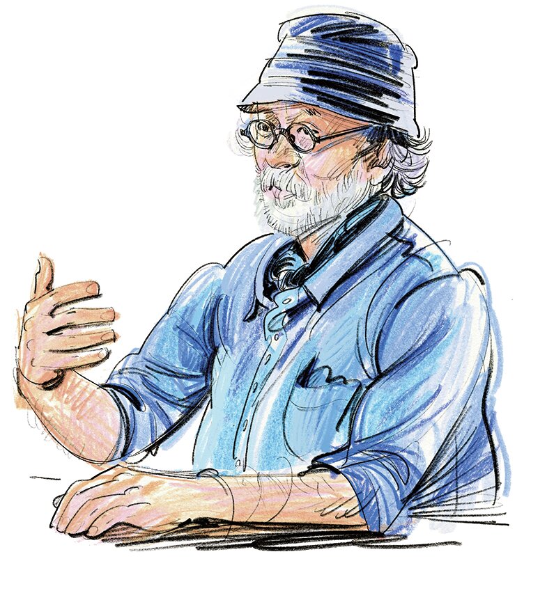 「1970年代中頃。地元高岡で伝説の洋服屋だった、「リトルマギー」のアルバイト時代からお付き合いさせていただいてます。現在もあちこち飛び回りながら本物で実用的なアメカジの現役伝道師、吉井譲二さん。1988年、東京・神田に「メイン」を開店することをはじめ、オリジナルブランドとして「カムコ」「バギー」「キングスウッド」など、歴史ある本物を掘り起こし生産を手掛ける大先輩です。ボクもあちこち廻ってる方だと思ってますが、ほとんどの会場で吉井さんとお会いします。出会った50年前から、ほぼ変わらないスタイル、自分でアイロンをかけた長袖シャツにベスト、チノパンにモカシン。本当に身に付いた服を着ることは、粋でかっこいい。大人の見本です!」(本江さん)