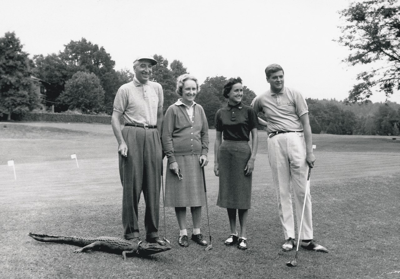ゴルフの視点でラコステを掘り下げるとき、忘れてはいけないのが創業者ルネ・ラコステの妻シモーヌの存在。彼女はプロゴルファーとして1927年に英国開催の世界選手権で外国人初の優勝を果たし、その後も13回にわたってフランスチャンピオンに輝いた。さらには、ルネとシモーヌの間に生まれた娘カトリーヌもプロゴルファーとして活躍。1967年の全米オープンでは、こちらも外国人として初のタイトルを獲得するなど、両親にも引けを取らない輝かしい成績を残している。このようにゴルフとも密接な関係を持つラコステ。現在のコレクションにゴルフモチーフのポロシャツやスウェットなどが展開されているのも納得だ。街だけでなく、グリーンの上でも“ラコワニ”を纏うことができるのは、トラッドとゴルフを愛する我々にとって嬉しい限りではないか。