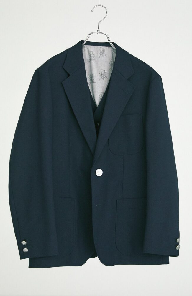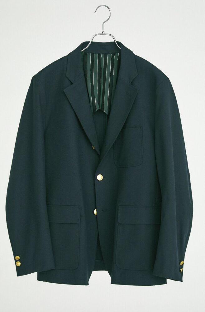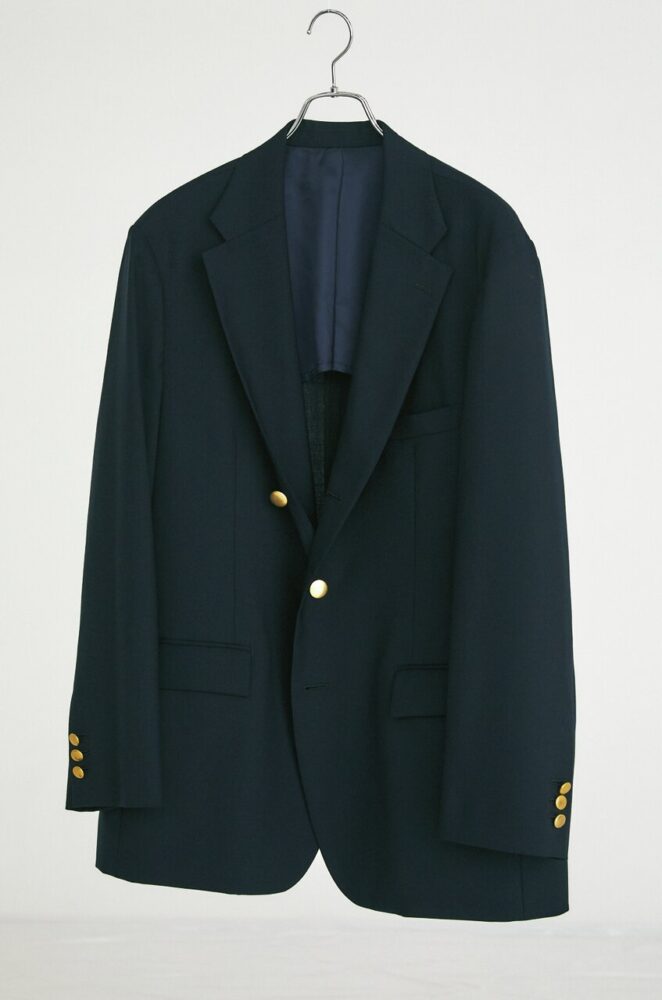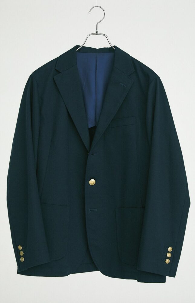 3ボタン段返り、センター・フックベントのオーセンティックなモデル。コットン100%のチノクロスに特殊な加工を施し、ハリがありつつもしなやかな表情を生み出している。身体に沿うシルエットともベストマッチだ。4万1800円(エムケースクエアTEL06-6534-1177)