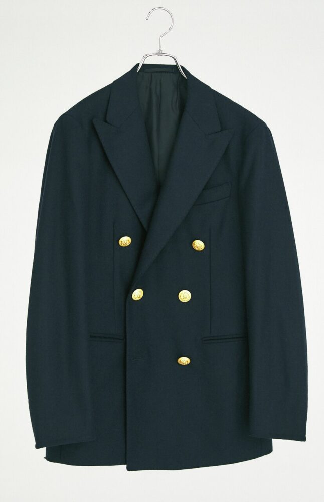 米海軍のサービス・コート(オフィサー以上の階級の人が式典の際に着用する制服)をベースとしたフランネルの6ボタンダブルブレスト。大ぶりな真鍮のフロントボタンや袖口のステッチに本格ミリタリーを感じる。13万2000円(THE REAL McCOY’S 東京TEL03-6427-4300)