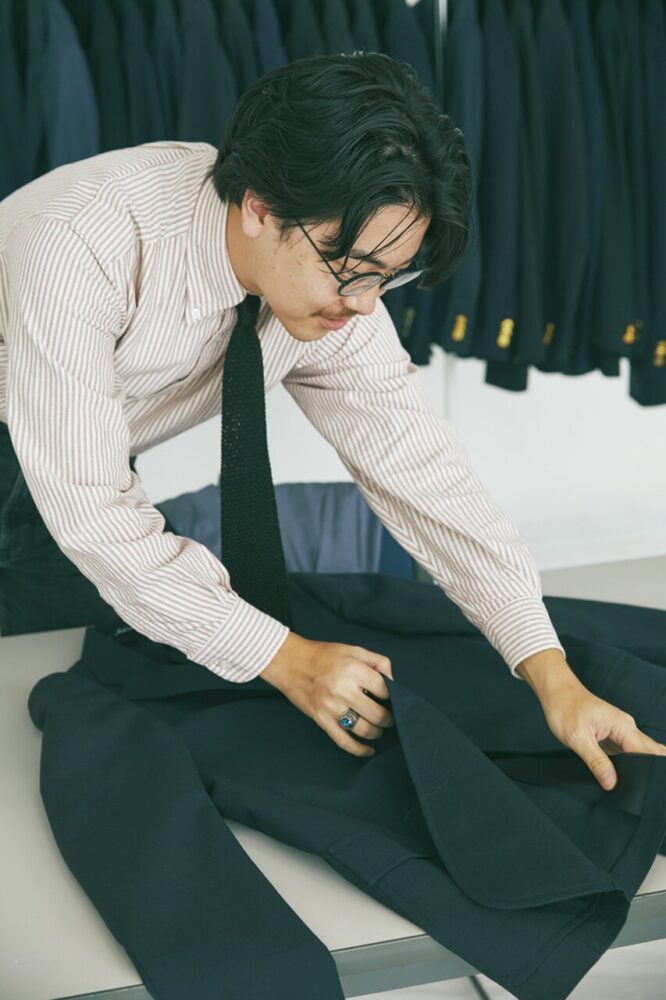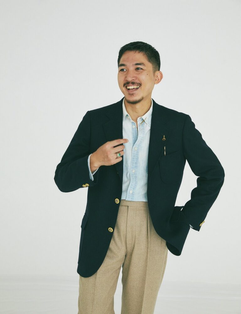 阿由葉 というのも、僕自身服飾系の専門学校を卒業してビームスに入社した時、ビームス Fに配属されてすぐにオリジナルのブレザーを買ったんですよ。リングヂャケット製で、肩の上りとかもすごく美しくて、仕立てがとにかくよかった。でもまだ20歳そこそこの自分にとっては、ちょっと堅すぎたんですよね。知識もテクニックも磨かれていないから、どうしても着こなしが一辺倒になっちゃう。
