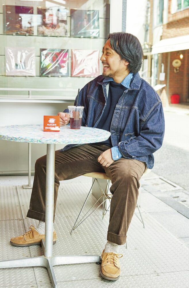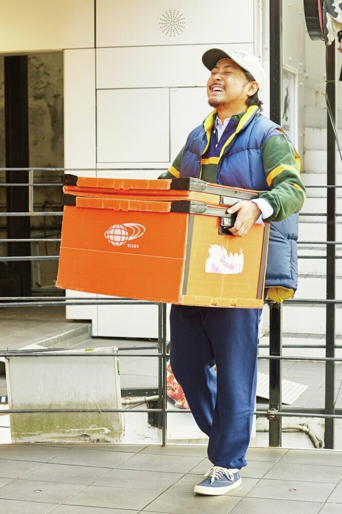 トレンドのラガーシャツにダウンベストを合わせたスポーティなスタイルのこの日は、新商品入荷ということで動きやすい着こなしを意識。「いまは秋冬新作の入荷ラッシュ。店舗スタッフの繁忙期であり、一番ワクワクする時期でもあります」ダウンベスト3万5200円/シエラデザインズ×ビームス プラス、ラガーシャツ2万2000円、シャツ1万4300円/ともにビームス プラス、スウェットパンツ2万3100円/ループウィラー×ビームス プラス、スニーカー1万3200円/スペリートップサイダー×ビームスプラス(すべてビームス プラス 原宿)その他私物