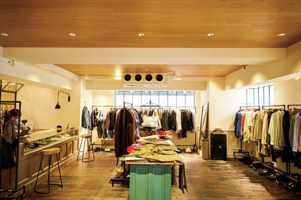 アメトラショップながらポップな店内はモダンな印象を感じさせる。それもそのはず、「アメリカントラディショナルなアイテムを軸に次世代に繋げていく」というコンセプトのもと2019年にオープンしたJプレス&サンズ青山は現代に目を向けている。
