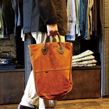 そして別注作も取り揃える。バイソンの米国製スウェードトート。同店のリクエストによる、タバコカラーのボディとチョコカラーのハンドルの組み合わせが大人向け。5万5000円