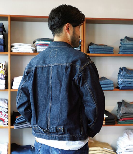 ファーストスタンダードのデニムジャケットは、超希少なコーンミルズ社製ホワイトオークの生地で製作したTバックのジャケット。ブルックリンのアトリエで、裁断から縫製までの工程をすべてひとりで行う。7万7000円