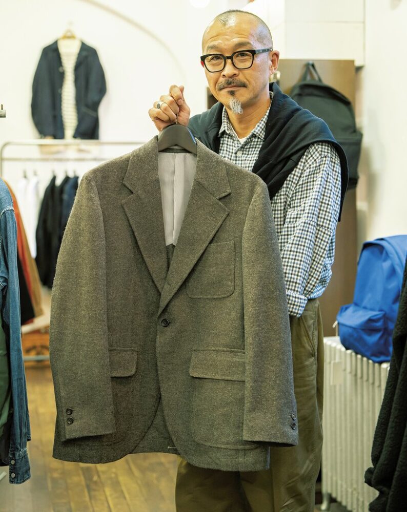 山口ストアーのツイードジャケットはリサイクルウールとコットンを混紡したヘリンボーン。デザインはアメリカントラッドど真ん中な段返り3つボタンのパッチポケット。6万8200円