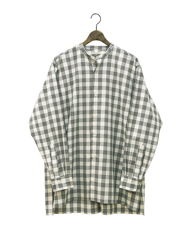 中性的な印象のユーゲンのバンドカラーシャツ。イタリア製の上質なコットンを使用しており、シルエットは現代的なややゆったりめ。4万9500円