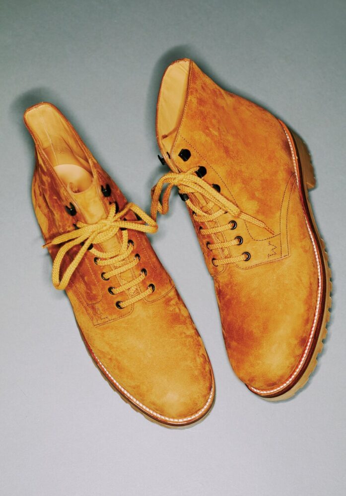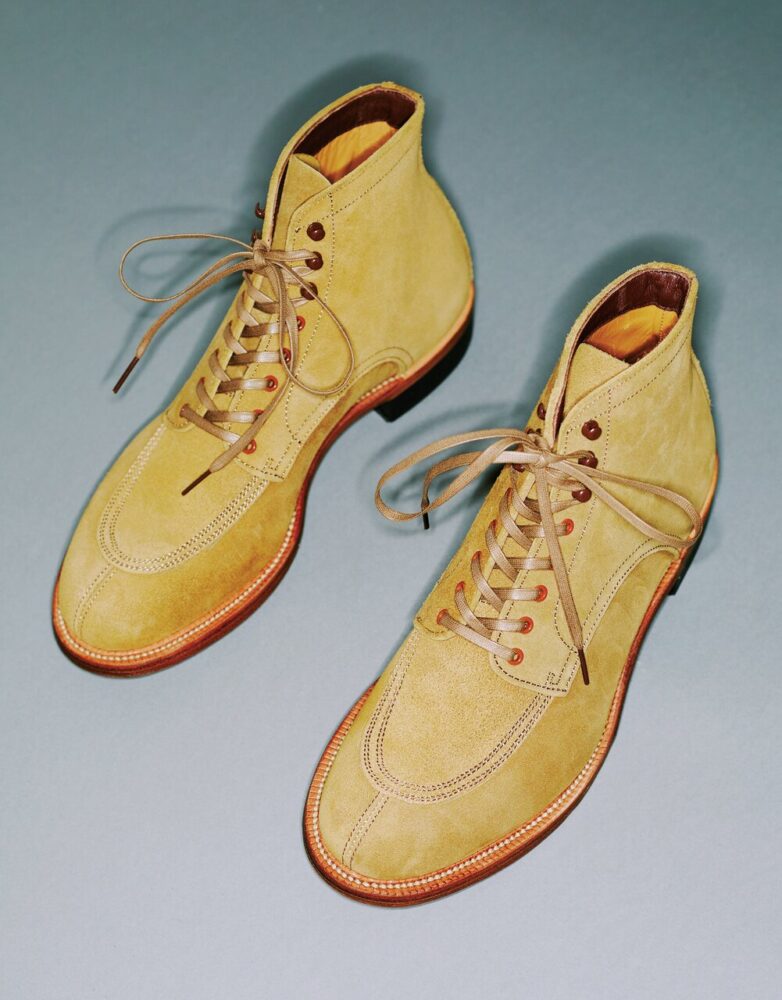 ヌバック素材のブーツは、同ブランドの[ゴルフハイトップ]と同シルエットを採用し、履き心地は快適。グッドイヤーウェルト製法によりソールは張り替え可能。15万9500円(ジェイエムウエストン 青山店TEL03-6805-1691)