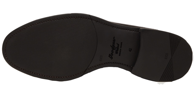 やや長めに設定されたノーズはドレススタイル向けのデザイン。ボロネーゼ式のグッドイヤーウェルト製法により、柔らかさと耐久性を両立している(ワールド フットウェア ギャラリー 銀座店TEL03-3572-6811)