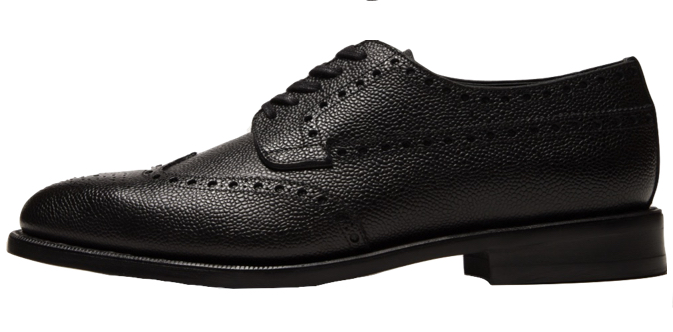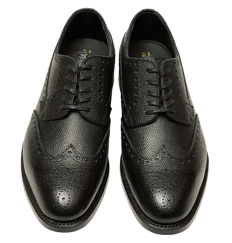 雨の日を想定した「オールウェザーシリーズ」のシボ革を使用したウィングチップ。油性クリームで撥水効果を高めたアッパーにグリップ力の高いビブラムソールを合わせた(サンレイTEL054-629-8328)