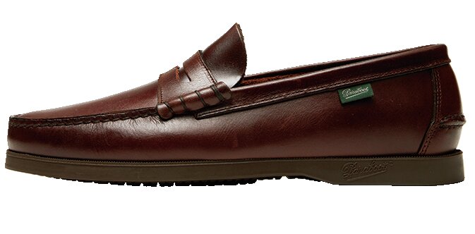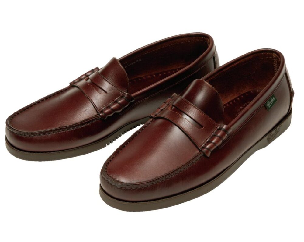 デッキシューズを原型に作られたブランドを代表するモカシンローファー[コロー]。デッキシューズにも使用されるマリンソールを採用し、雨の日も滑りにくく、堅牢性と履き心地の良さを見事に両立させている。やや明るいブラウンのカラーリングは幅広いスタイルとマッチし、フランス靴ながらブレザーやチノパンなどのアメトラスタイルとも相性抜群(パラブーツ青山店TEL03-5766-6688)