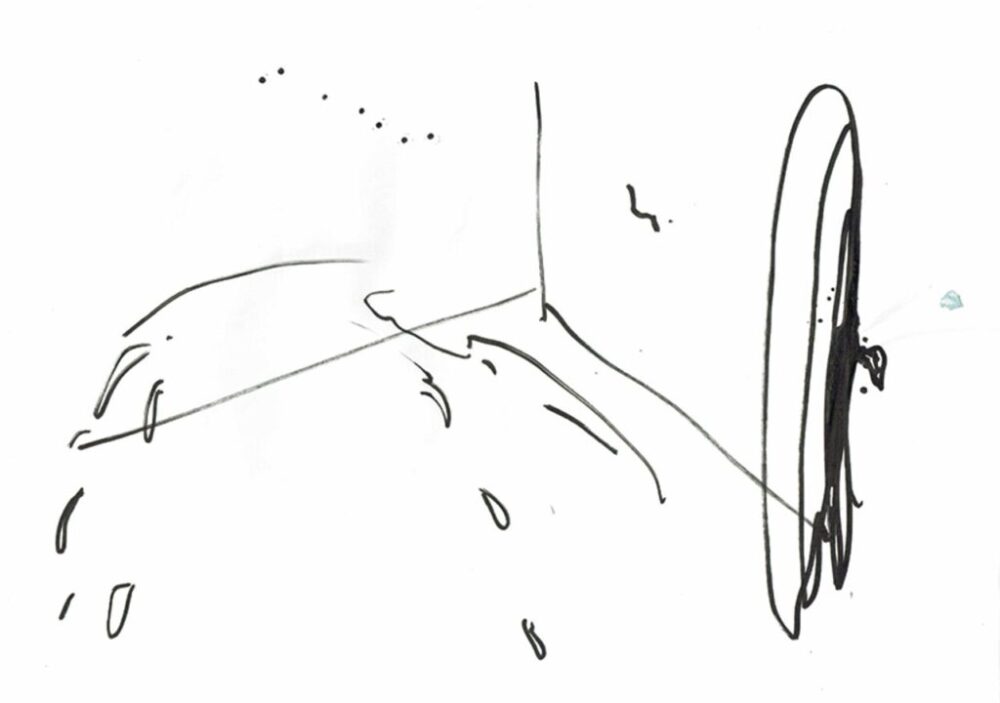 偶然性とか、でかい自然みたいなものはやっぱり面白いなと思いました。それに自分がそういうものと一緒に作るのが好きなんだなって。「これが俺だ」みたいな作品ではなくて、環境や偶然性と協同して作るという感じです。そのせいでこっちが困ったりもするけど、どうにかなる。ドローイングを作るときも、紙にちょっと付いてしまった跡や、踏んでしまった跡がいい感じになったり。