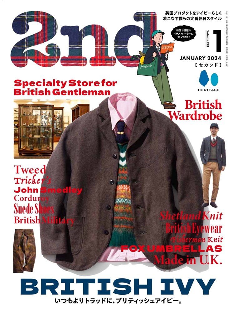 そこで我々『2nd』は、“ブリティッシュアイビー”という新たなキーワードをもとに、洗練されたクラシックな着こなしを取り戻そうと試みる。もちろんいつものアイビースタイルを軸に、だ。スウェード靴はもちろん、ダッフルコート、フェアアイルニット、ツイードやコーデュロイのセットアップなど、英国プロダクツとそれらを取り入れた着こなしをふんだんに盛り込んだ『2nd 1月号』。これを手に、いまこそクラシックへと回帰するのだ!
