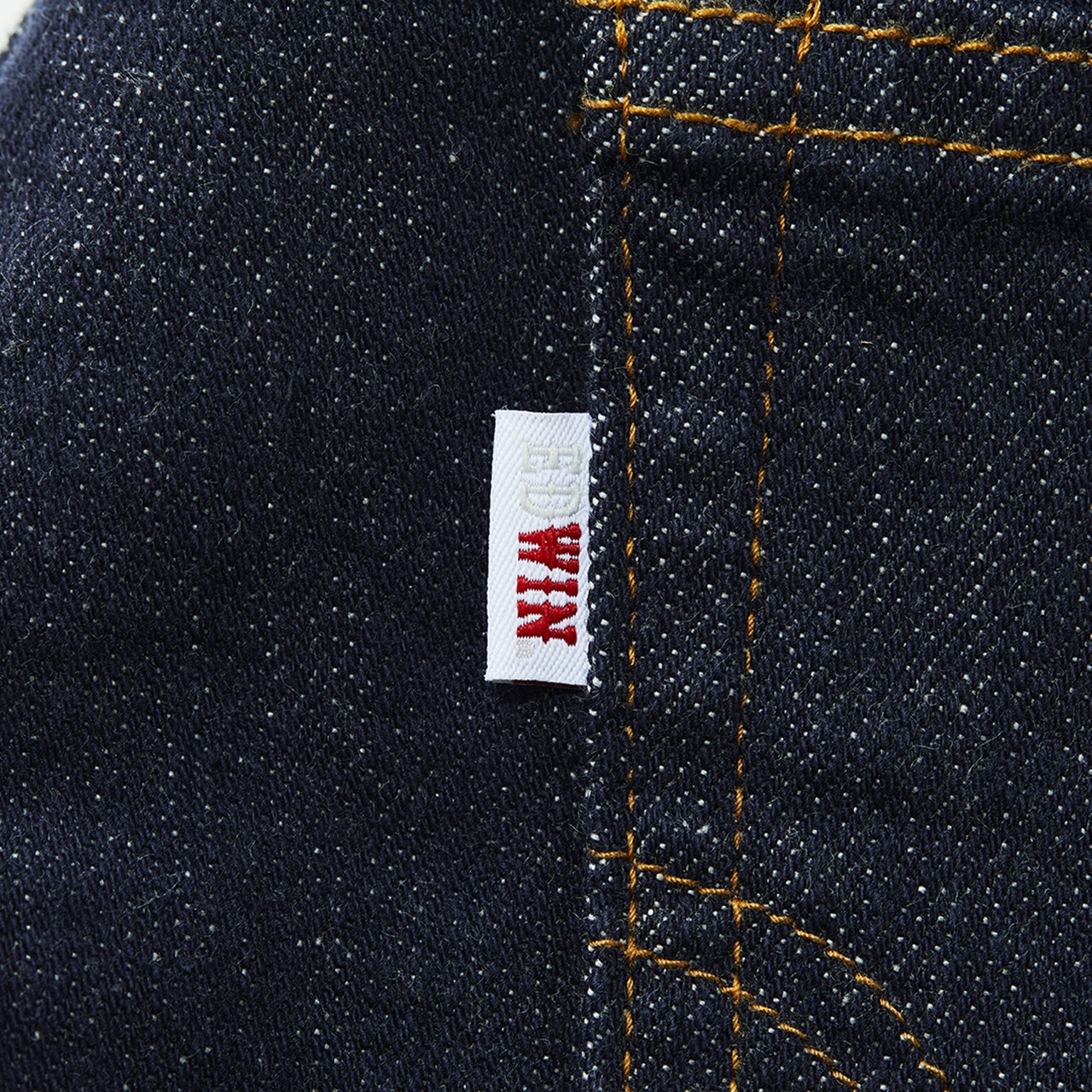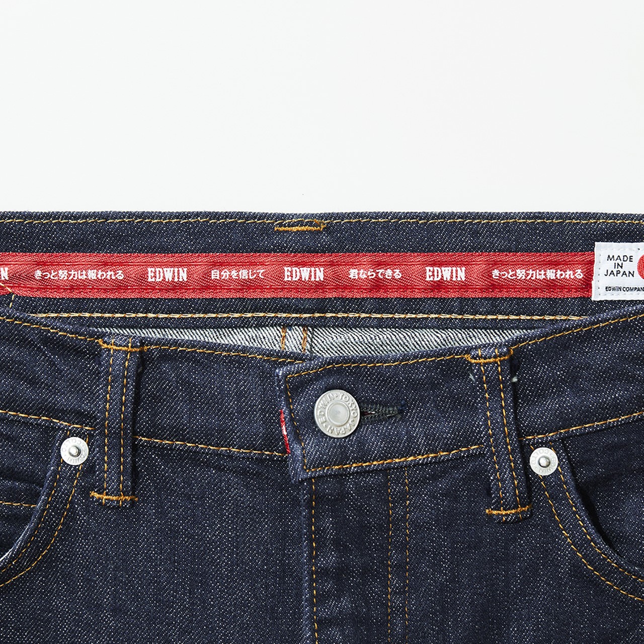 通常は1色で表現されるバックポケットのEDWINタブを特別に「WIN(勝つ)」だけを赤で