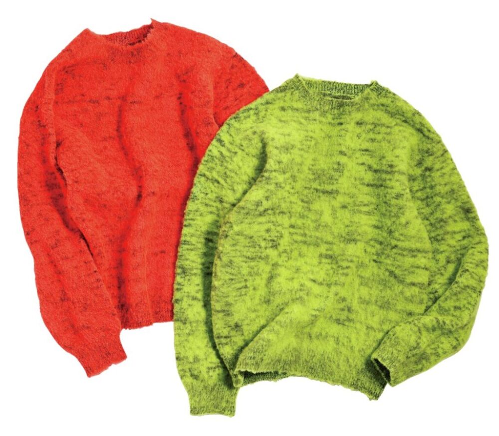 山形の老舗ニットメーカーである米富繊維のファクトリーブランドとして、上質かつファッション性に優れたニットアイテムを展開する「コーヘン」。独特のボリュームと質感を持つ英国製羊毛をネオンカラーに染め上げ、カシミヤとミックスしさらに起毛加工を施すことでシャギードッグセーターに。4万9500円(Yonetomi STORE 023-664-8165 www.coohem.jp/)