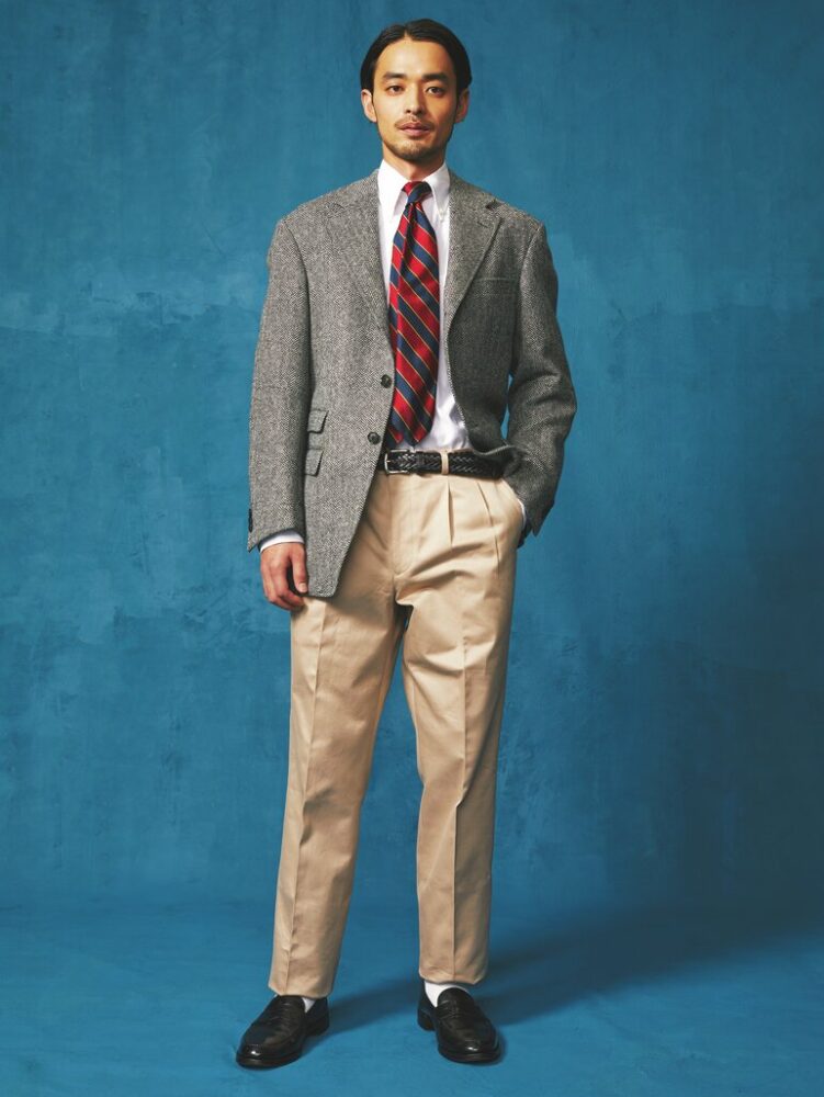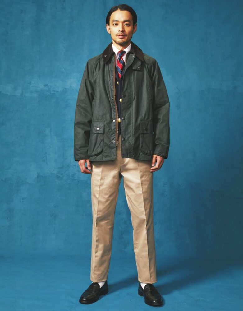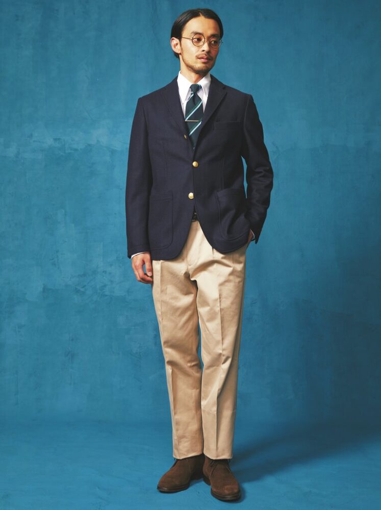 もっとも分かりやすく、手軽に、かつ確実に英国テイストを演出することができる。構築的なシルエットかつシェイプのきいたウエスト、ポケットの形状などによって、英国らしさを演出・調整できればあなたはもう上級者。
