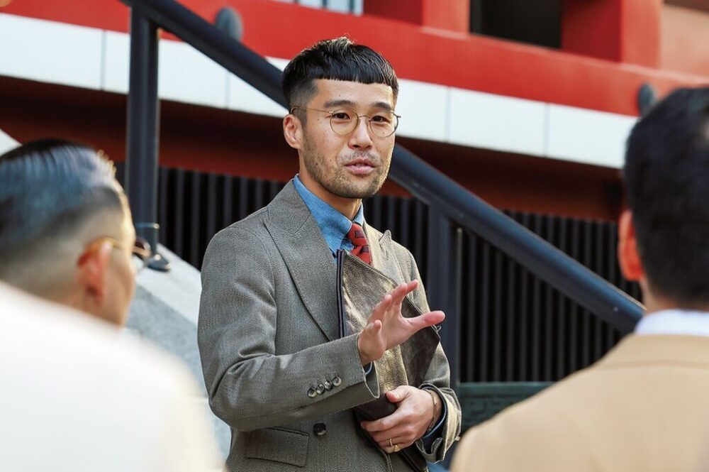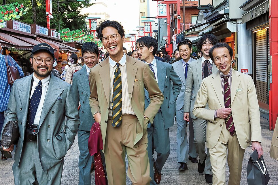 去る10月28日、東京・浅草で開催された第1回目となる「背広散歩」のオフ会。メンズドレスファッションのさらなる発展を目指し、定期的に集まっていたというドレスファッションに携わる業界人がインスタグラムを通じて参加者を募り、70人を超えるスーツを着た男たちが大集結した。