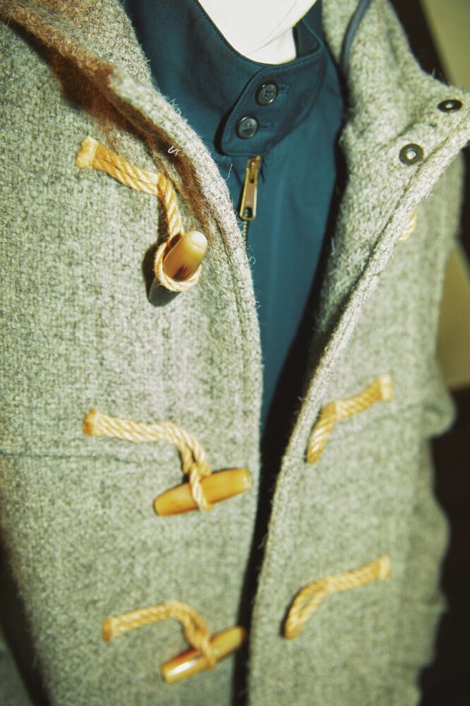 只者ではないオーラを放つダッフルコートがS.E.Hケリーと聞いて納得。彼らは素材や部材、製法のすべてをピュアな英国製にこだわる、ほぼ唯一のブランドと言っていい。ひと目で特別感が伝わる生地はハードウィック種と呼ばれるイングランド北西部の湖水地方に自生する羊毛を何世紀にも前から存在する足踏み式手織り機で仕上げた珠玉のハンドウーブンツイードだ。39万3800円(メイデンズショップTEL03-5410-6686)