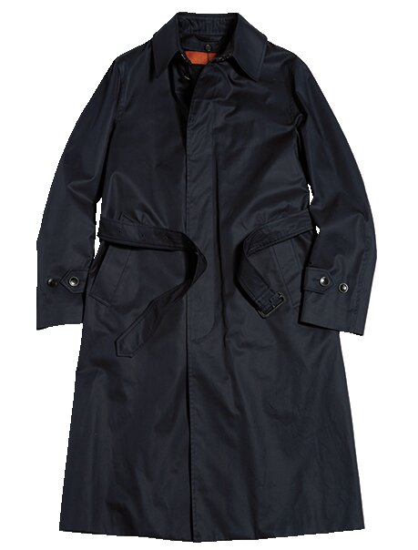 撥水性のあるグレンフェル・クロスの上品な光沢が洗練されたシルエットで、さらに際立つ。19万5800円(ヴァルカナイズ・ロンドンTEL03-5464-5255)