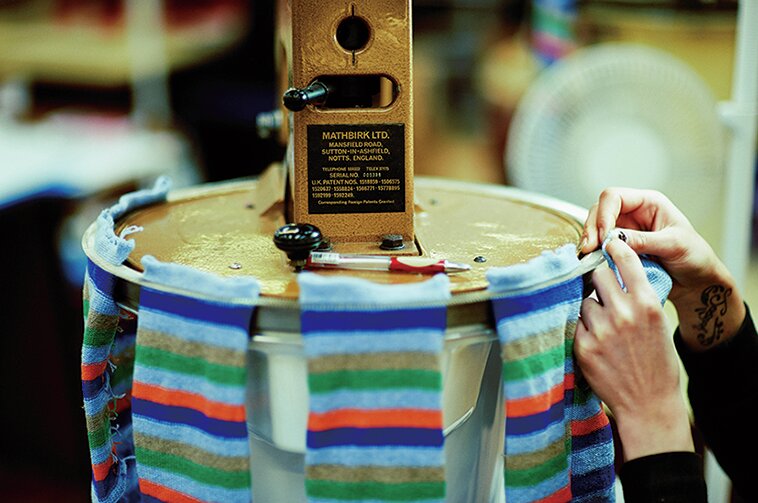 また私たちが地場とは関係ない、独立した産業だったということも大きいでしょう。工場があるウェールズは石炭と自動車が主な産業であり、ニットメーカーは他にひとつとしてありません。創業者は炭鉱で働く人たちが裸足で作業をする姿を見て、寒々しいと感じ、暖かいソックスを履いてほしいと願う一心でスタートしました。