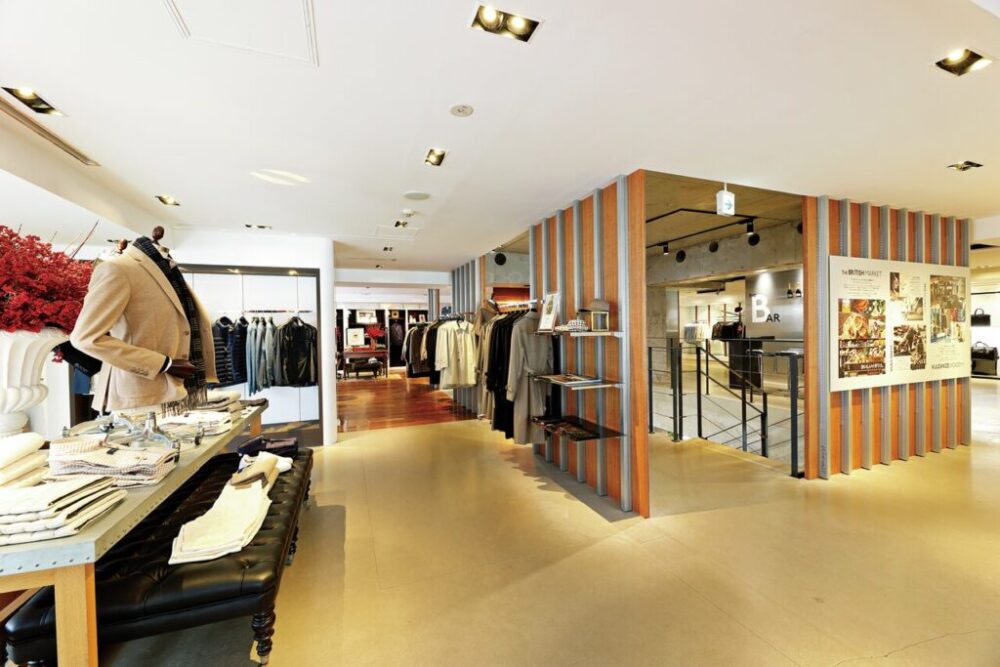 売り場面積なんと600㎡を誇る大型店。1Fはレディースとライフスタイル、2Fがメンズフロアとなり、「ハケット ロンドン」や「アクアスキュータム」といった名門の最新コレクションをはじめ、トラッドからモダンまで様々なカテゴリーを展開。また、カルチャーイベントなどを定期的に開催し、英国の現在進行系を提案し続けている。