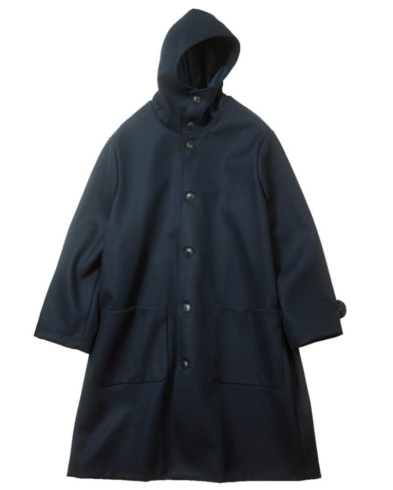 深いインバーテッドプリーツが入ったAラインシルエットが特徴。雨風にも強く、ラフに羽織って美しいフーデッドコート。10万8900円