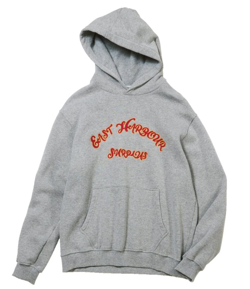 ブランド名があしらわれたカレッジスウェット風のシンプルなフーディー。3万7400円