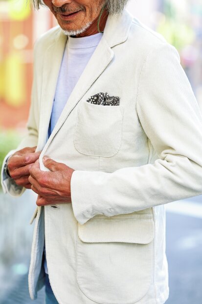 「ナポリで縫製され、作りはしっかりしたテーラーベース。ですが、Tシャツ、スウェット、セーターなどカジュアルなインナーに日常着として合わせやすいんです」