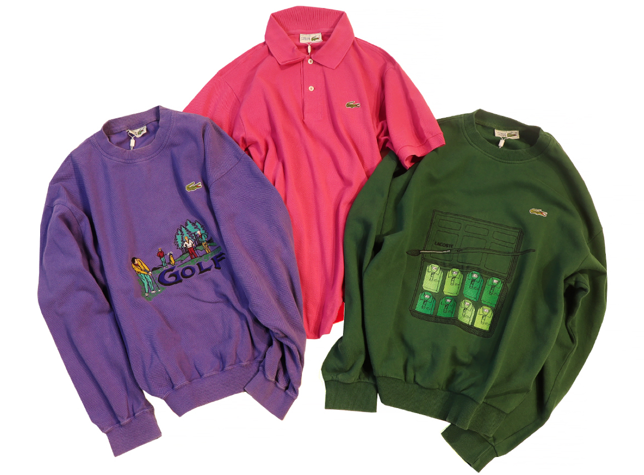 90年代以降を中心に、懐かしさがあるのにフレッシュな感じがするデザインを集めています。Lacoste Harajuku限定。どれも一点ものだ。