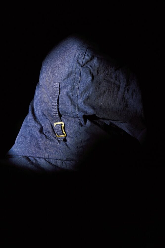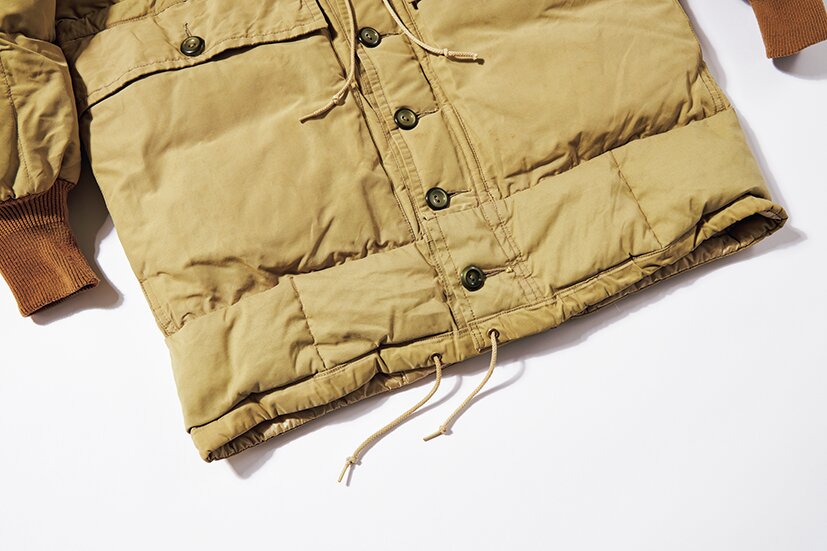 着丈がダウンパック一段分長くなったスペシャルレア。さらに通常は存在しないチンストラップも付いている。共生地で作られるので特別なオーダーと思われる。13万2000円(ミスタークリーンTEL090-2206-1755)
