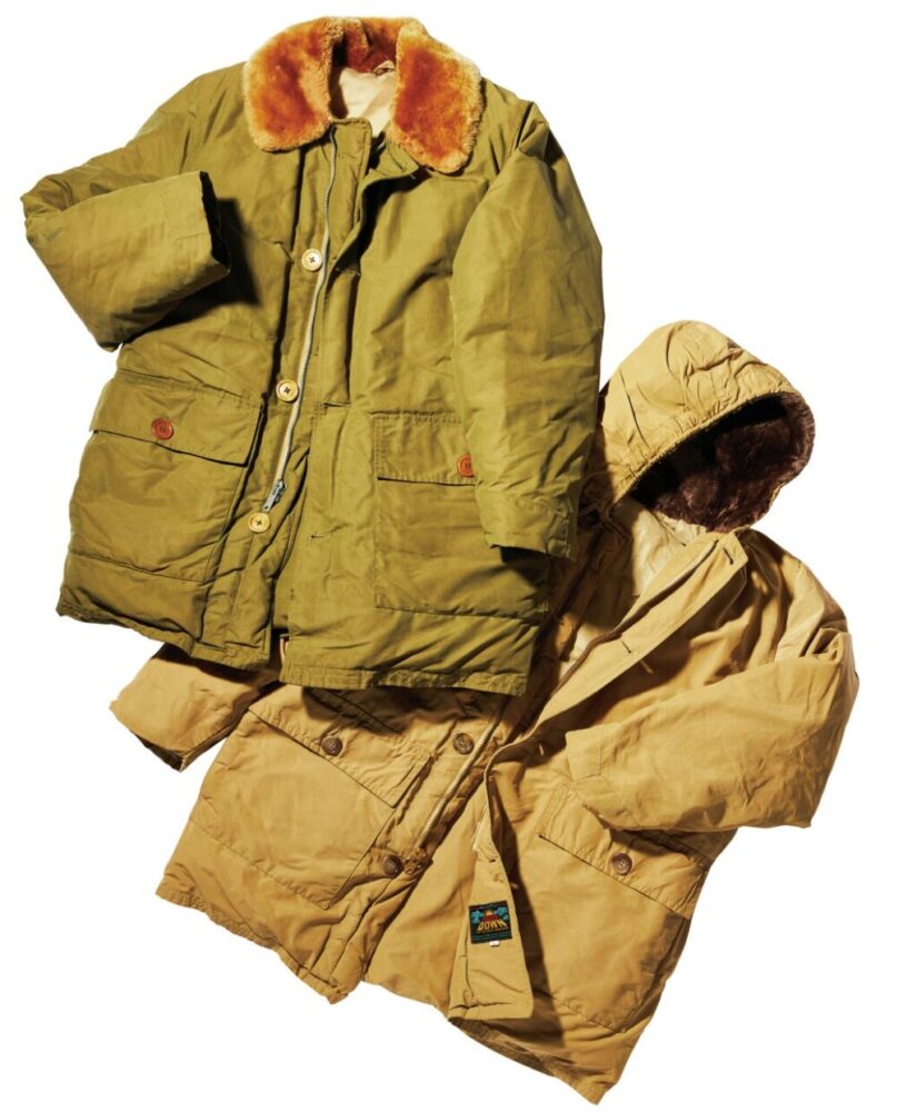 街でも使えるダウンコートとして1951年の登場時は、写真下のレギュラーカラーのみだった。後にファー仕様の襟も追加。写真左は60年代製。上/参考商品、下/2万8490円(ドラセナ吉祥寺本店TEL0422-26-9366)