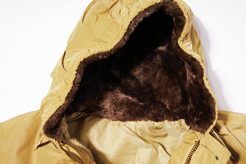 左/[ポーラーライト]の襟は、3種類から選べるようになっていた。これは「エアコープスタイプ」と呼ばれ、フード付きで内側がムートンファーの60年代製。6万3800円(バックストリートTEL042-720-0355)