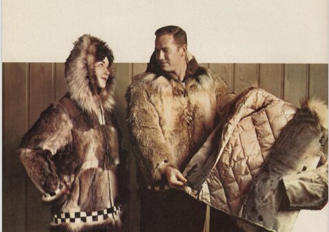 マスクラット、ウルフ、ウルヴァリンのリアルファーを組み合わせ、エスキモーパーカをイメージしたダウンコート。1964年のカタログで、価格は310ドルだった(参考商品)