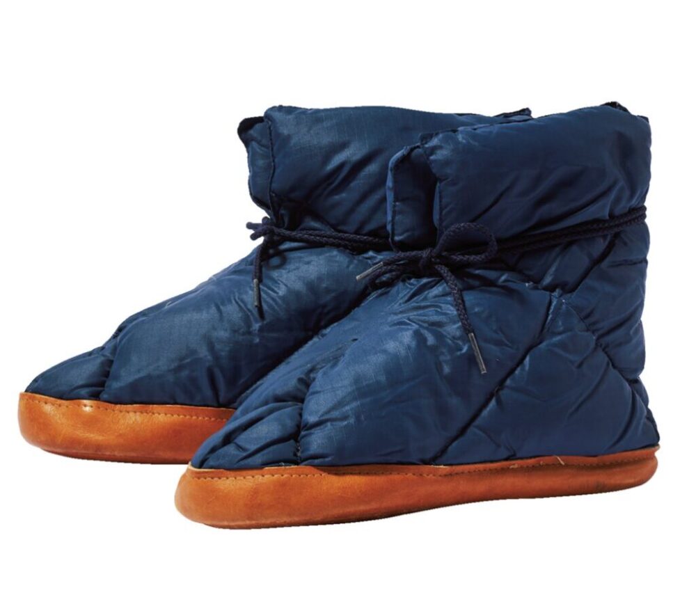 家でもキャンプでも活躍するダウンブーティー。クッションの効くインソールに、グローブレザーソール。1万4190円(バックストリートTEL042-720-0355)