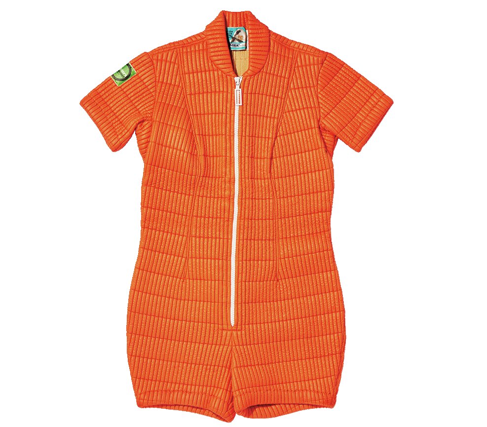 「フローテーション」という専用ネームが付く[アンフィビアス スポーツスーツ]。水辺で安全に活動するための、スタイリッシュなウエア。7万4800円 (BトロTEL03-6447-4147)