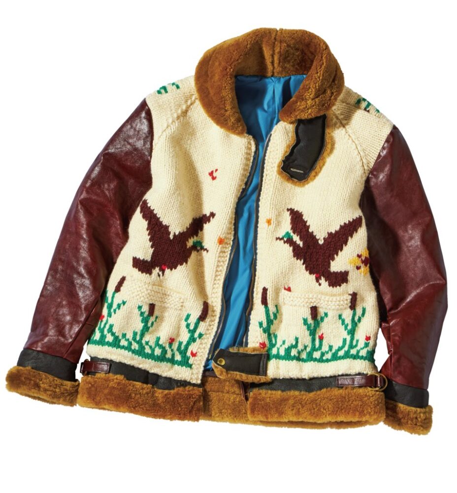 ボディには世界的に減少傾向にあるヴィンテージカウチンを贅沢に使用し、袖、襟、裾は米国空軍のB-3フライトジャケットと同仕様。2つの異なるアイテムを再構築したそのルックスは、僕たちの男心を刺激する。さらに、裏地には米国から取り寄せたリップストップナイロン、チンストラップには英国製の動物ボタンを使用するなど、細部にまでこだわりが。武骨でありながら上品さも兼ね備えた極上の1着に是非とも袖を通していただきたい。28万6000円(ザストアバイメイデンズTEL03-5410-1777)